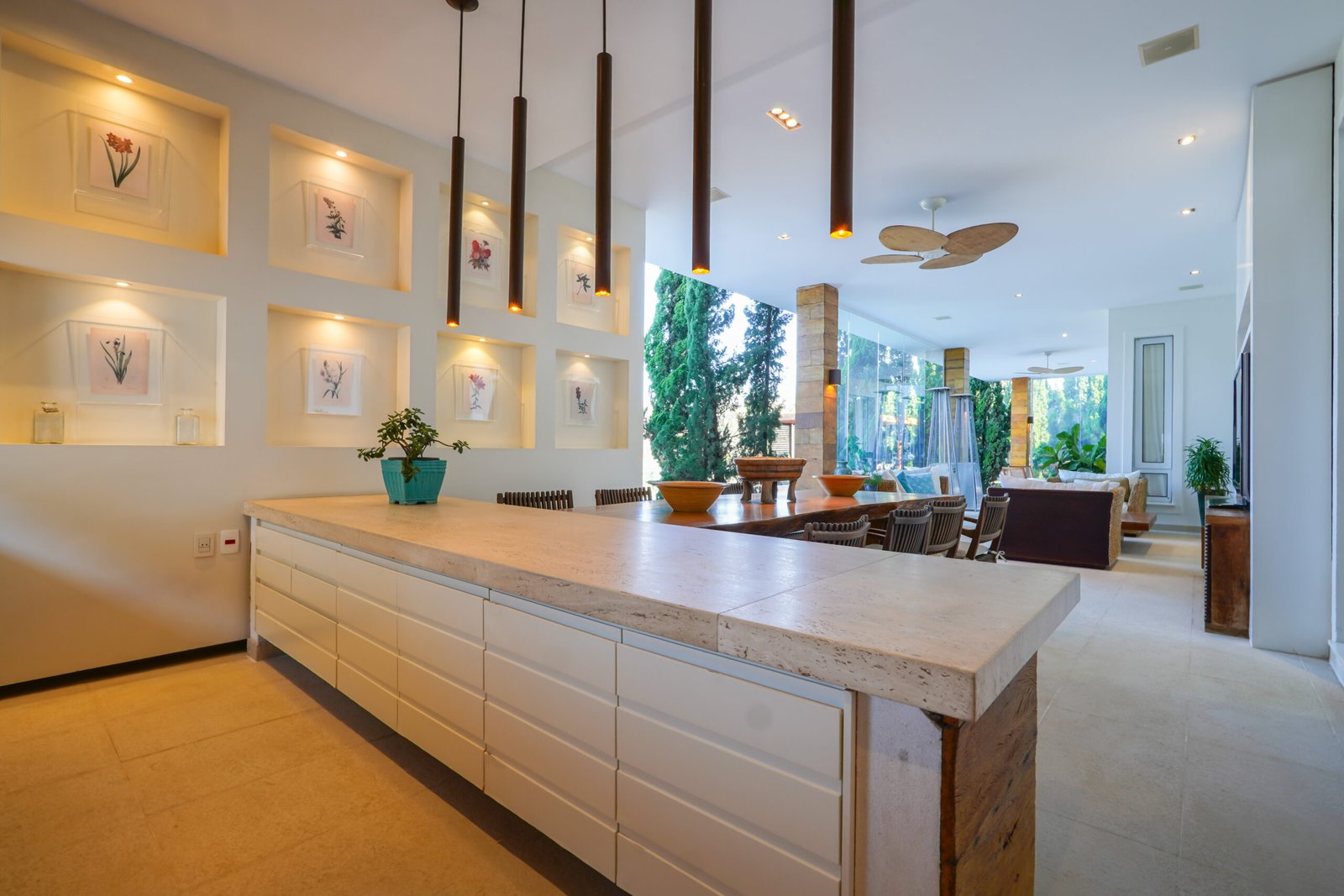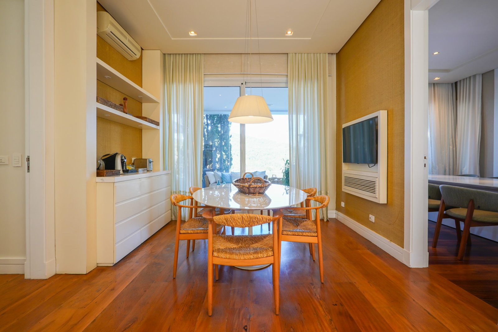 Sala de jantar com vista para área de preservação