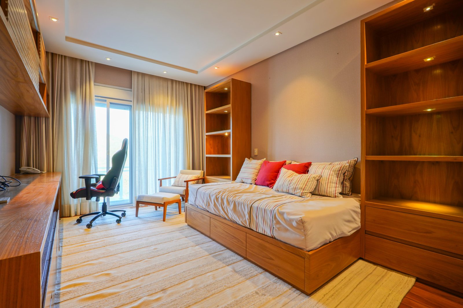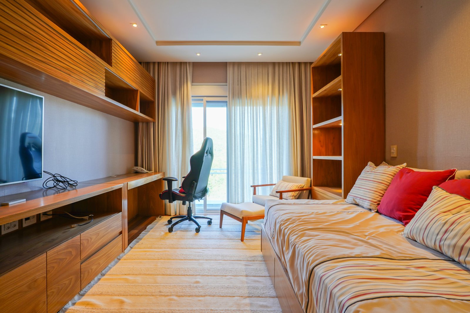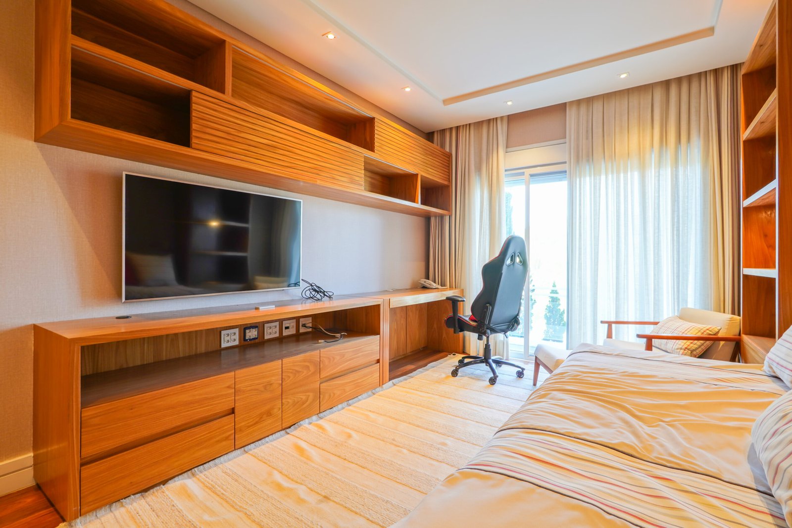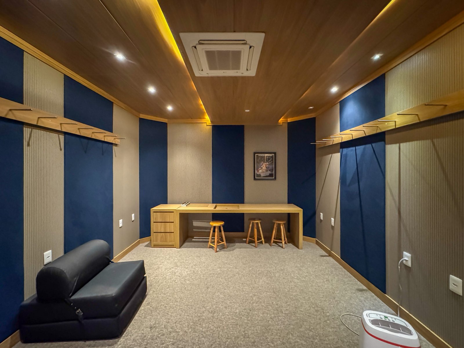 Estúdio musical com tratamento acústico