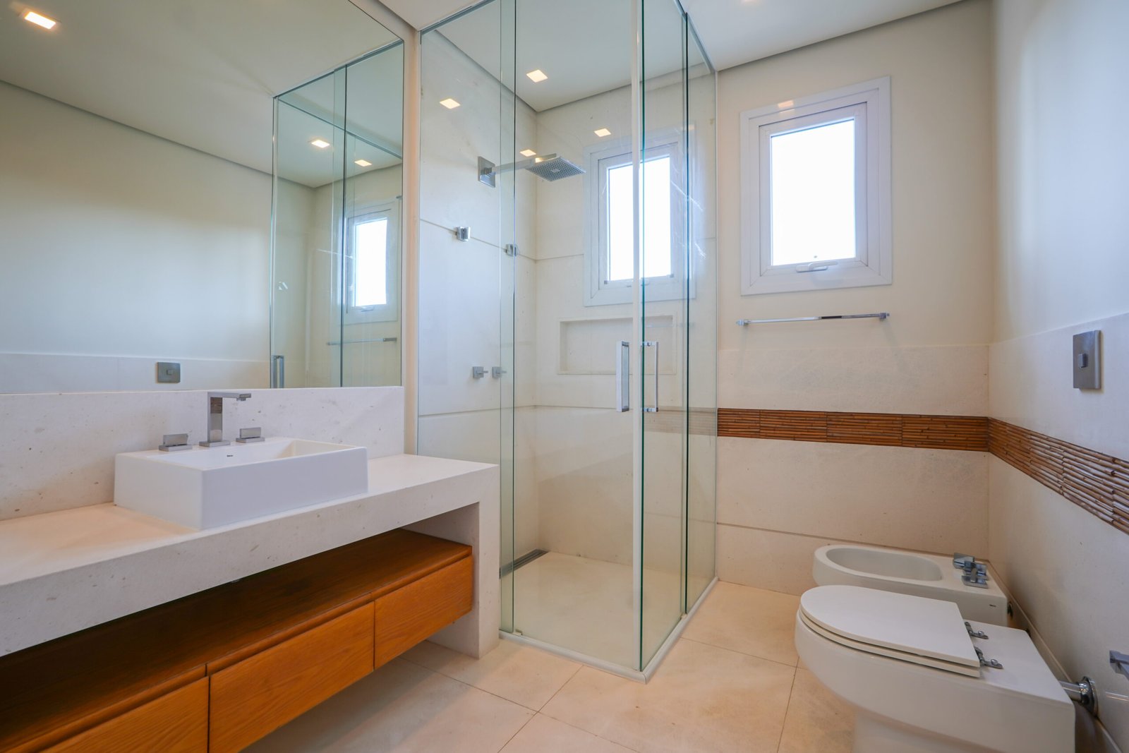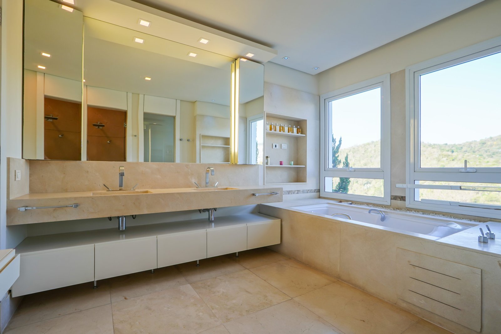 Banheiros com acabamento em mármore